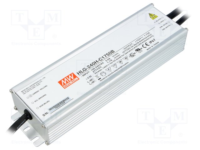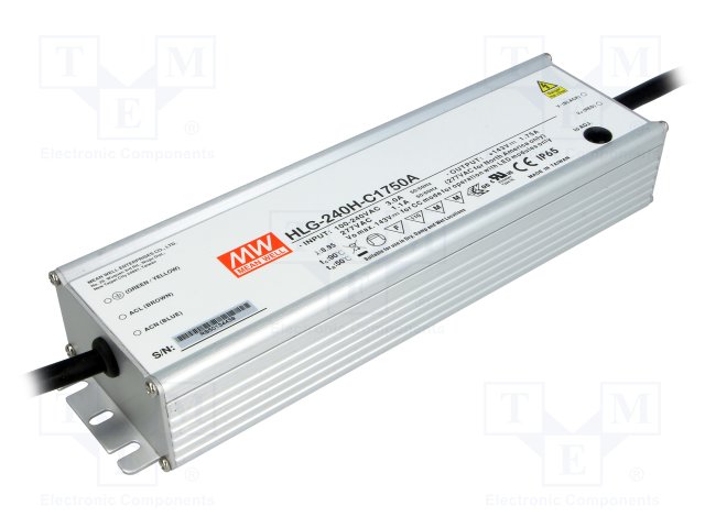 Блок питания: импульсный; LED; 250Вт; 71÷143ВDC; 1750мА; 90÷305ВAC |