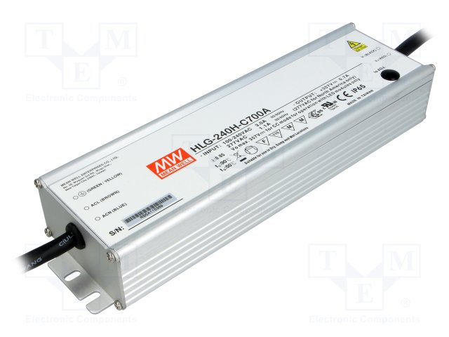 Блок питания: импульсный; LED; 250Вт; 178÷357ВDC; 700мА; 90÷305ВAC |