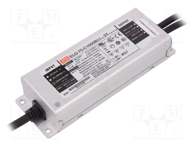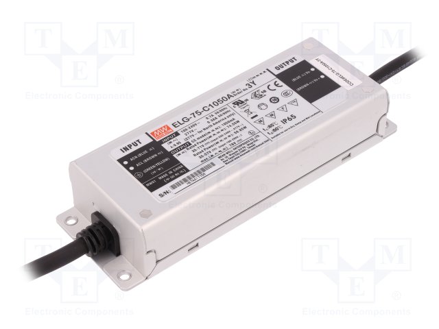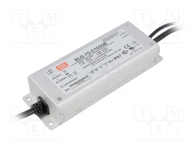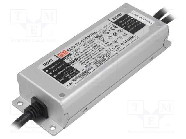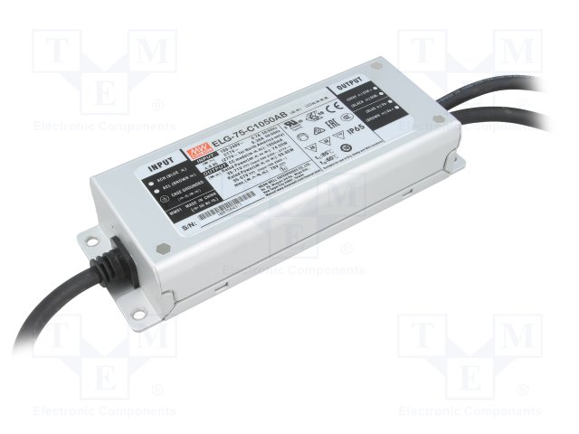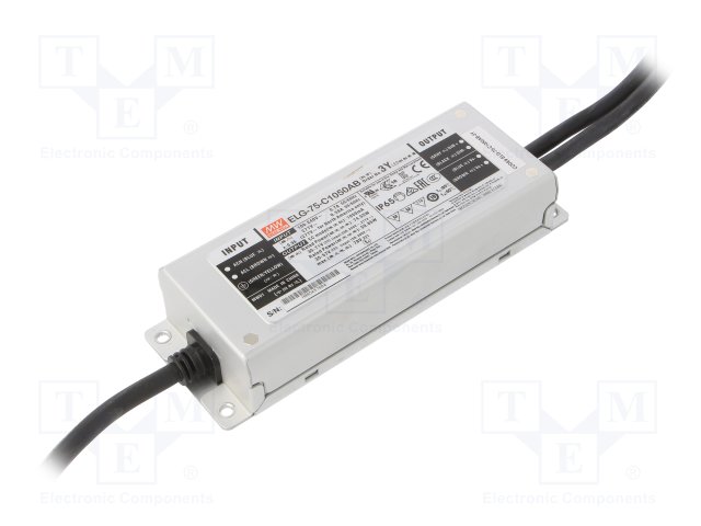 Блок питания: импульсный; LED; 75Вт; 35÷71ВDC; 1050мА; 100÷305ВAC |