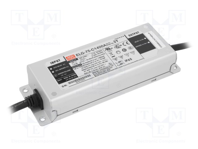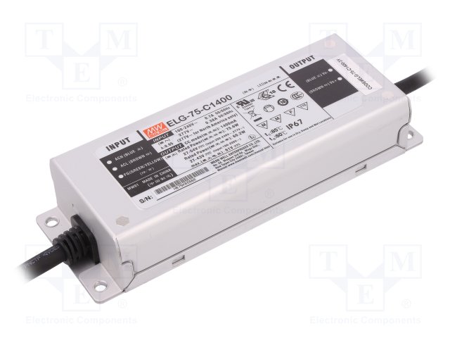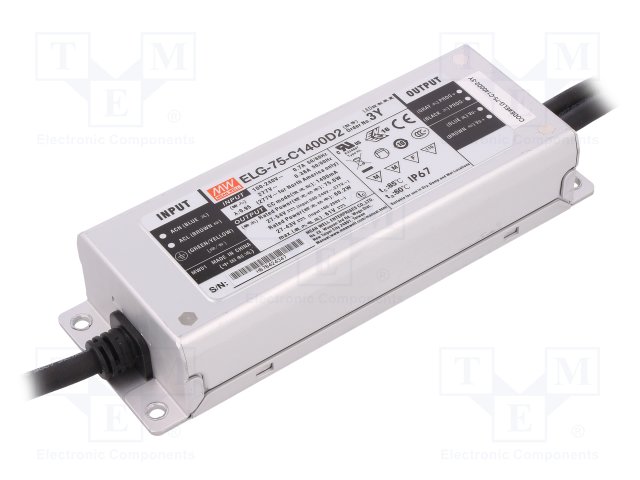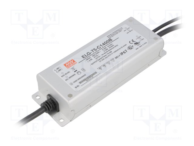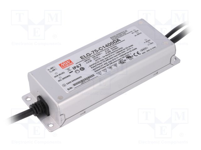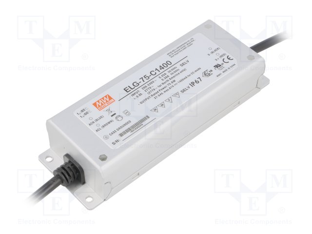 Блок питания: импульсный; LED; 75Вт; 27÷54ВDC; 1400мА; 100÷305ВAC |