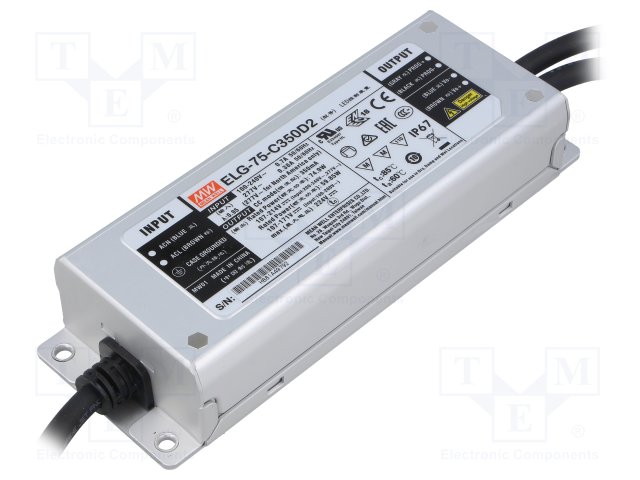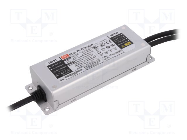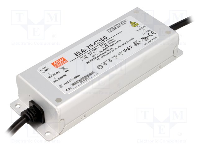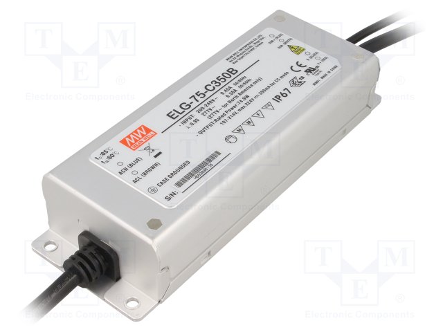 Блок питания: импульсный; LED; 75Вт; 107÷214ВDC; 350мА; 100÷305ВAC |