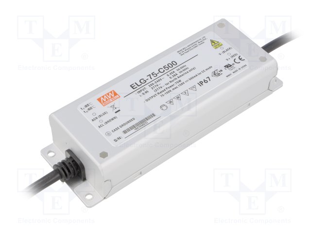 Блок питания: импульсный; LED; 75Вт; 75÷150ВDC; 500мА; 100÷305ВAC |