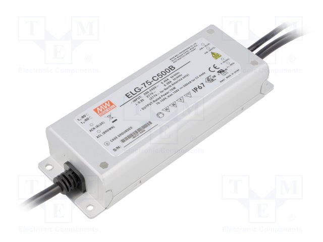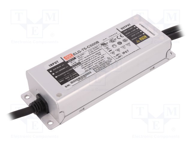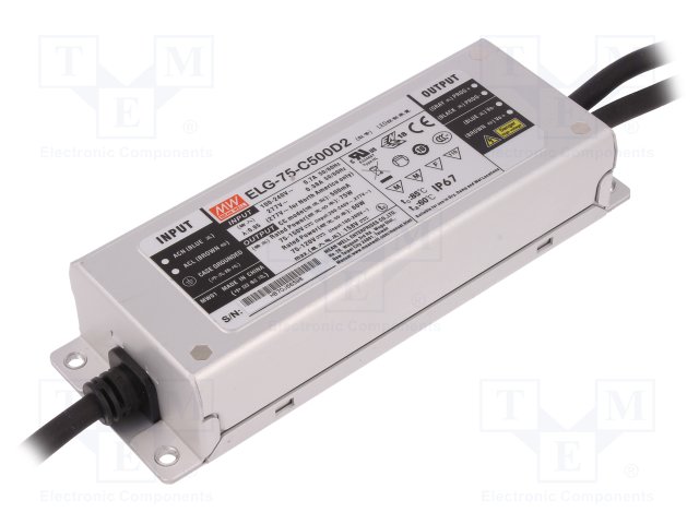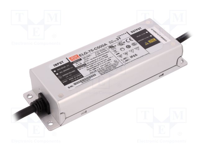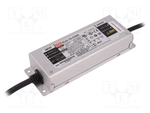 Блок питания: импульсный; LED; 75Вт; 75÷150ВDC; 500мА; 180÷295ВAC |