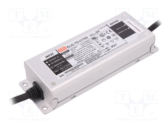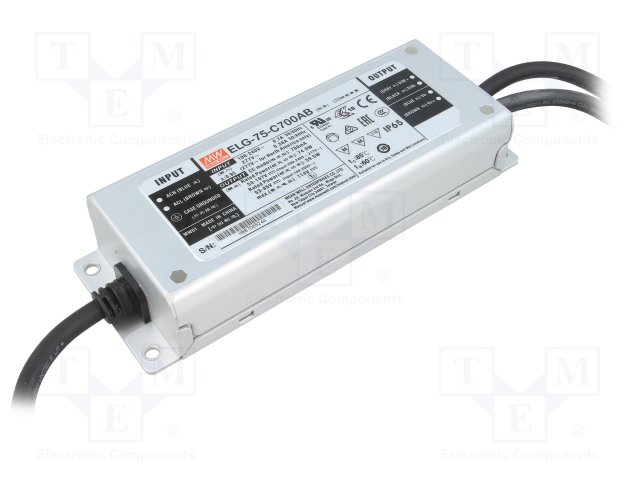 Блок питания: импульсный; LED; 74,9Вт; 53÷107ВDC; 700мА; IP67; 800г |