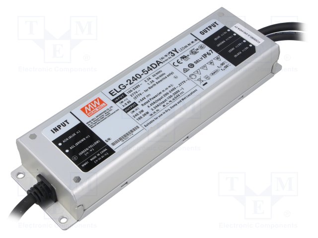 Блок питания: импульсный; LED; 240,3Вт; 54ВDC; 4,45А; 100÷305ВAC |