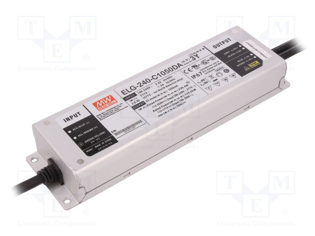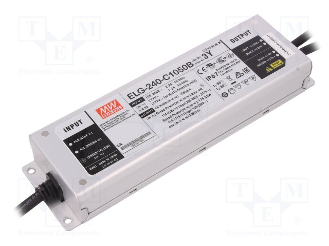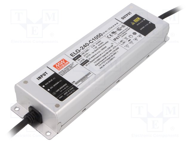 Блок питания: импульсный; LED; 239,4Вт; 114÷228ВDC; 1050мА; IP67 |