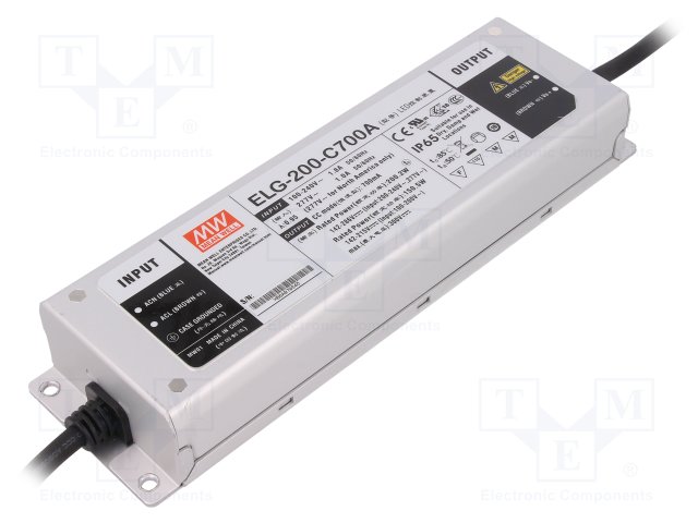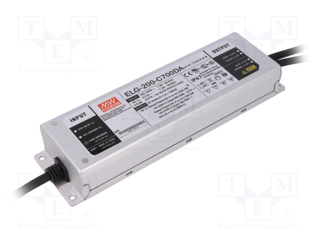 Блок питания: импульсный; LED; 200,2Вт; 142÷286ВDC; 700мА; IP67
