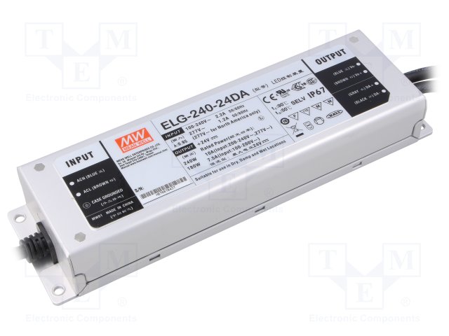 Блок питания: импульсный; LED; 240Вт; 24ВDC; 10А; 100÷305ВAC; IP67