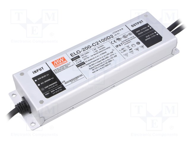 Блок питания: импульсный; LED; 199,5Вт; 95÷190ВDC; 1,05А; IP67 |