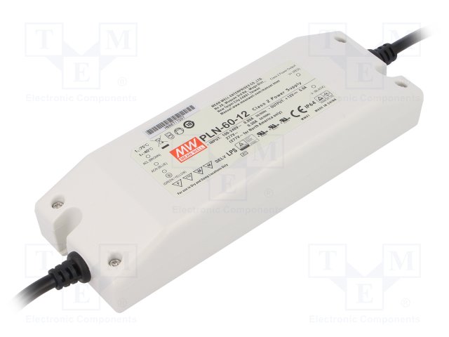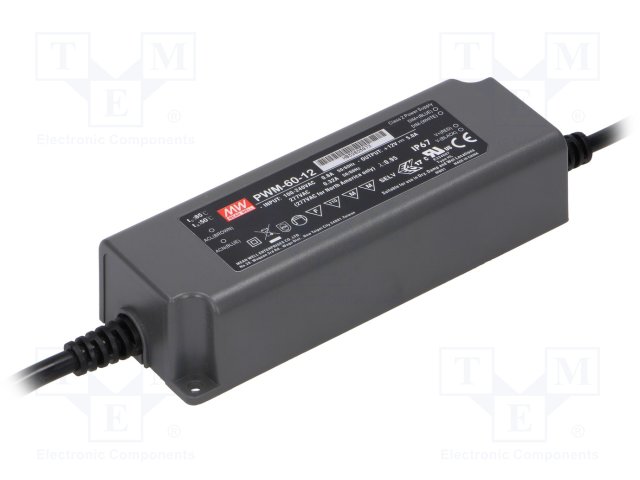 Блок питания: импульсный; LED; 60Вт; 12ВDC; 3,75÷5А; 90÷264ВAC |