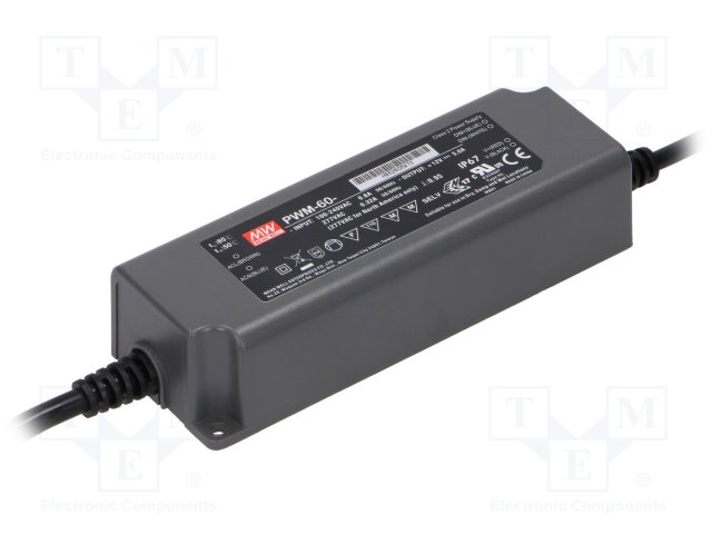 Блок питания: импульсный; LED; 60Вт; 24ВDC; 16,8÷24ВDC; 2,5А; IP64 |