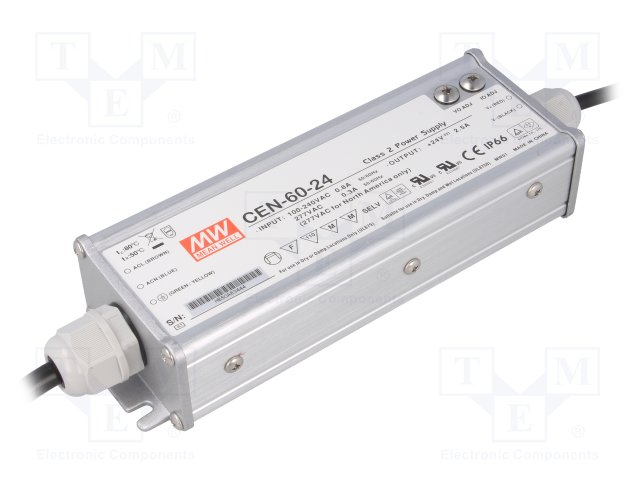 Блок питания: импульсный; LED; 60Вт; 24ВDC; 2,5А; 90÷264ВAC; IP67