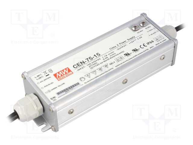 Блок питания: импульсный; LED; 75Вт; 15ВDC; 5А; 90÷264ВAC; IP67