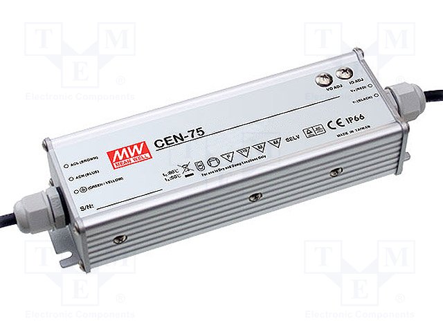 Блок питания: импульсный; LED; 75Вт; 24ВDC; 22÷27ВDC; 3,15А; IP66