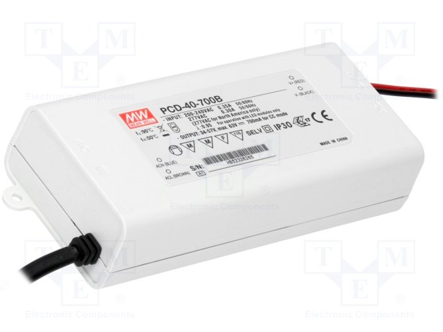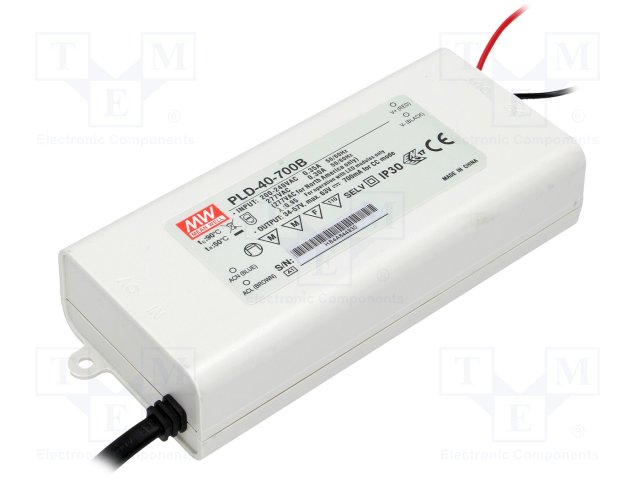Блок питания: импульсный; LED; 39,9Вт; 34÷57ВDC; 700мА; 180÷295ВAC