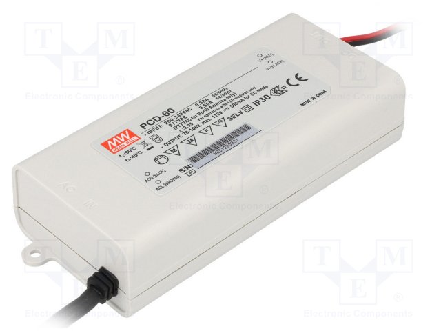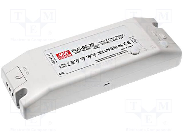 Блок питания: импульсный; LED; 60Вт; 20ВDC; 14÷20ВDC; 3А; 90÷264ВAC