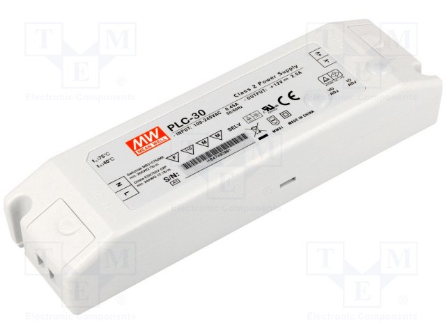 Блок питания: импульсный; LED; 30Вт; 12ВDC; 8,4÷12ВDC; 2,5А; IP20