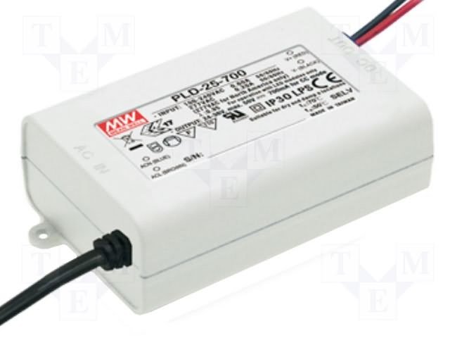 Блок питания: импульсный; LED; 25,2Вт; 24÷36ВDC; 700мА; 90÷295ВAC