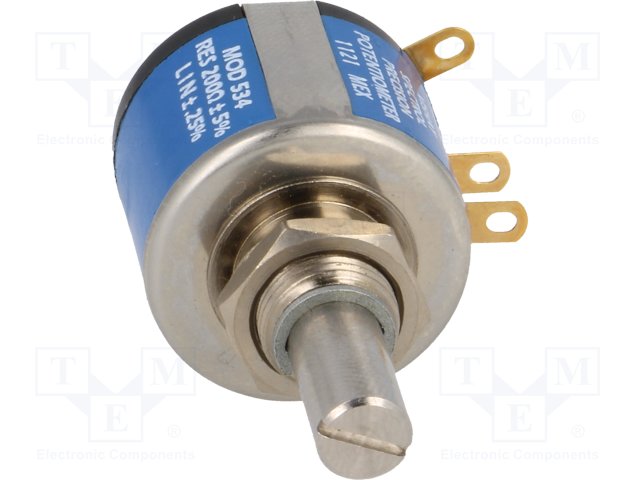 Потенциометр: осевой; многооборотный; 2кОм; 2Вт; ±5%; 6,35мм