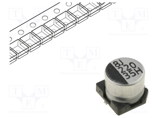 Конденсатор: электролитический; SMD; 220мкФ; 35ВDC; Ø10x10мм; ±20% |