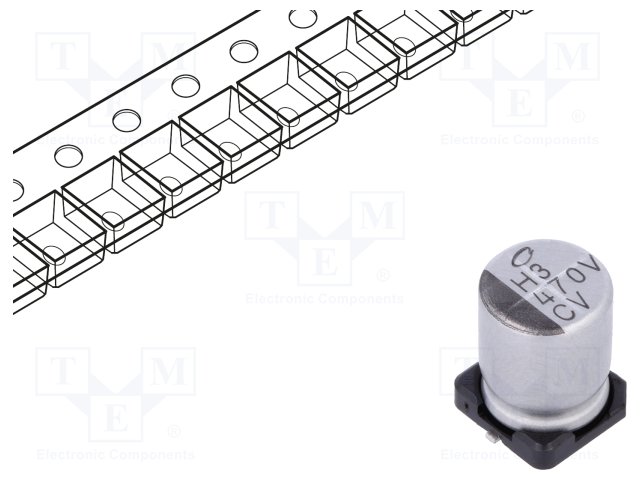 Конденсатор: электролитический; SMD; 47мкФ; 6,3ВDC; Ø5x7мм; ±20% |