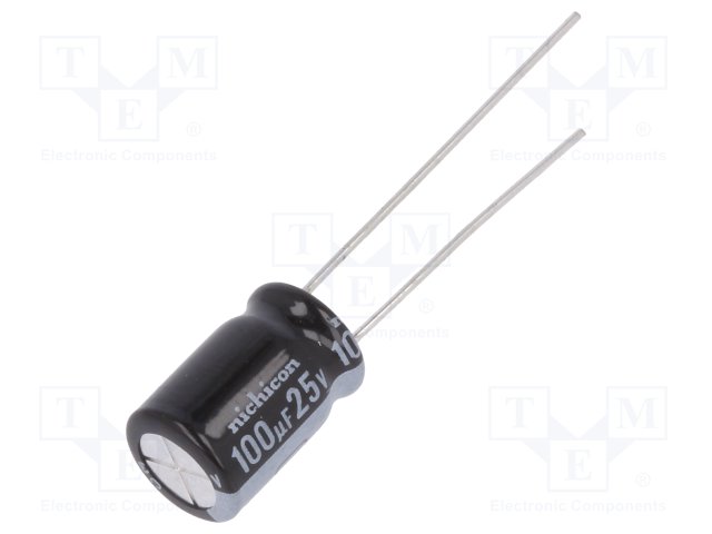 Конденсатор: электролитический; THT; 100мкФ; 25ВDC; Ø8x11мм; ±20% |
