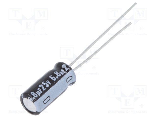 Конденсатор: электролитический; THT; 6,8мкФ; 25ВDC; Ø5x11мм; ±20% |
