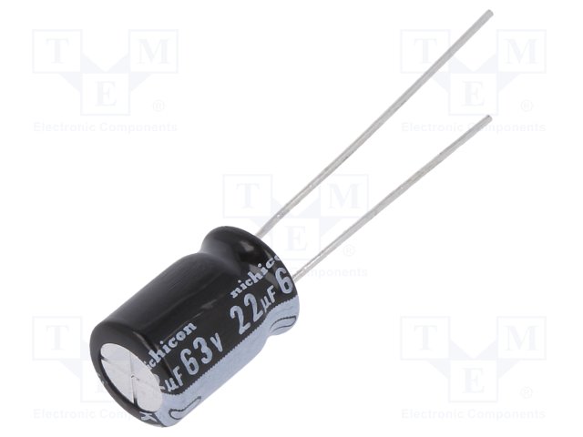 Конденсатор: электролитический; THT; 22мкФ; 63ВDC; Ø8x11,5мм; ±20% |