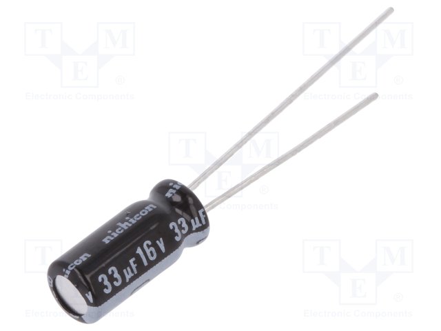 Конденсатор: электролитический; THT; 33мкФ; 16ВDC; Ø5x11мм; ±20% |