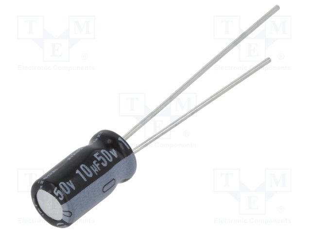 Конденсатор: электролитический; THT; 10мкФ; 50ВDC; Ø5x9мм; Шаг: 2мм |