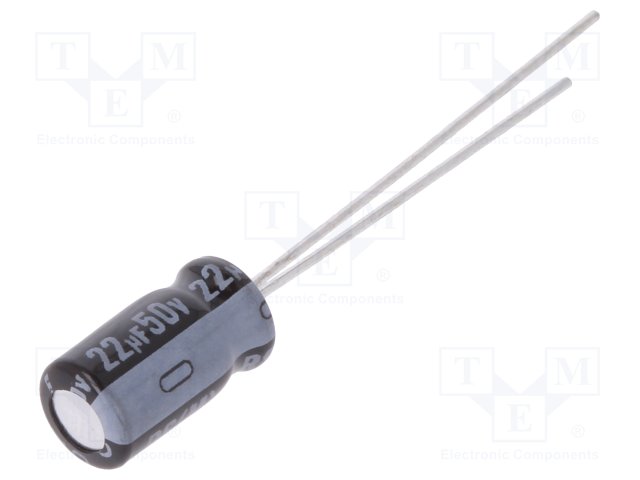 Конденсатор: электролитический; THT; 22мкФ; 50ВDC; Ø5x9мм; Шаг: 2мм |