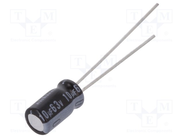 Конденсатор: электролитический; THT; 10мкФ; 63ВDC; Ø5x9мм; Шаг: 2мм |