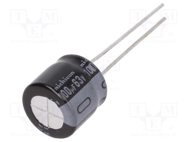 Конденсатор: электролитический; THT; 100мкФ; 63ВDC; Ø10x9мм; ±20% |