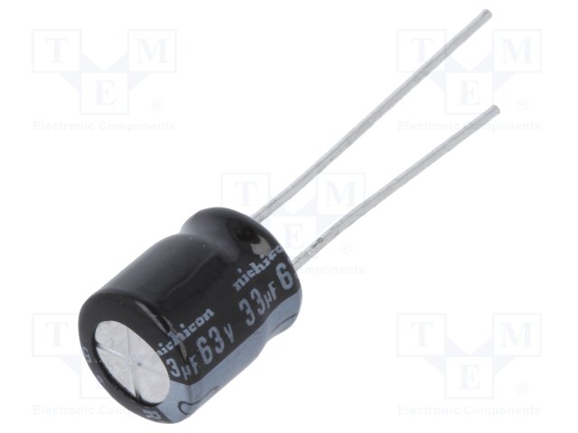 Конденсатор: электролитический; THT; 33мкФ; 63ВDC; Ø8x9мм; ±20% |