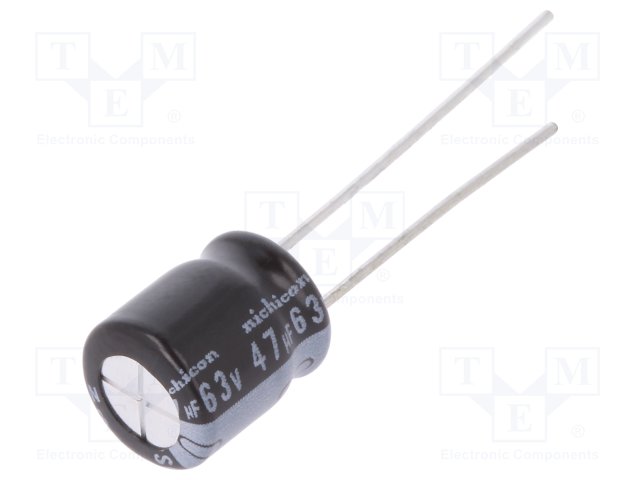Конденсатор: электролитический; THT; 47мкФ; 63ВDC; Ø8x9мм; ±20% |