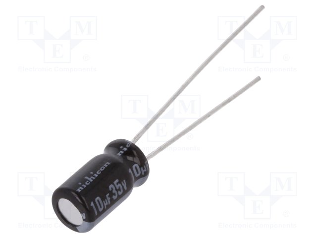 Конденсатор: электролитический; THT; 10мкФ; 35ВDC; Ø5x9мм; Шаг: 2мм |