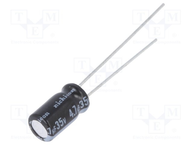 Конденсатор: электролитический; THT; 4,7мкФ; 35ВDC; Ø5x9мм; ±20% |