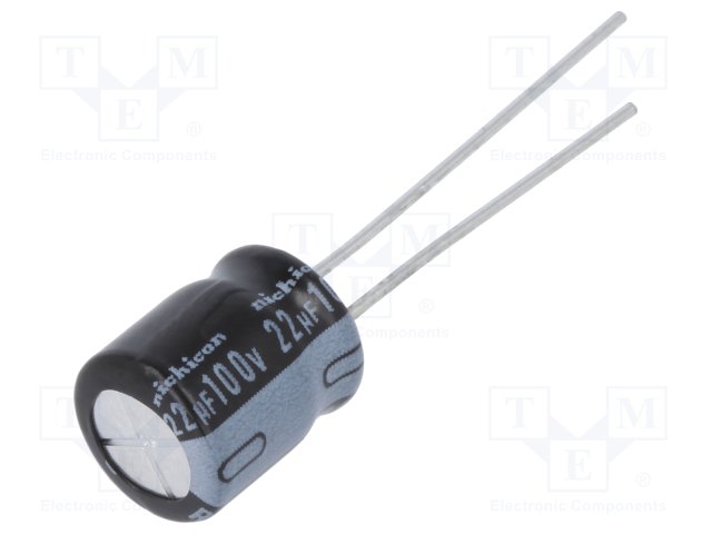 Конденсатор: электролитический; THT; 22мкФ; 100ВDC; Ø8x9мм; ±20% |