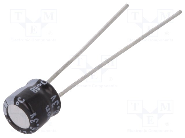 Конденсатор: электролитический; THT; 33мкФ; 10ВDC; Ø5x5мм; Шаг: 2мм |