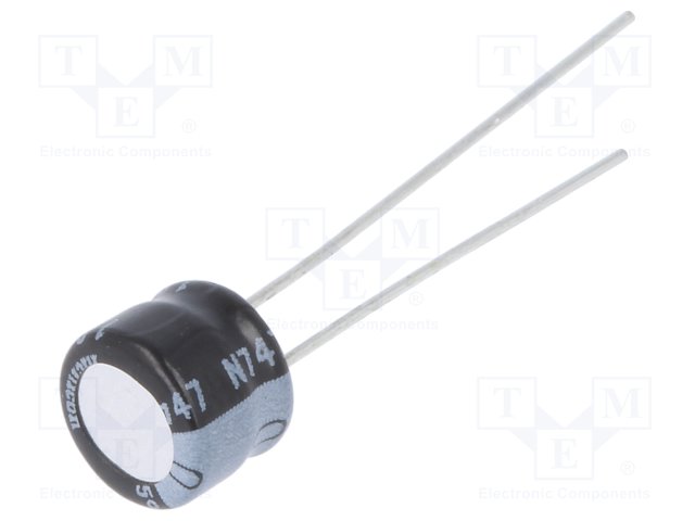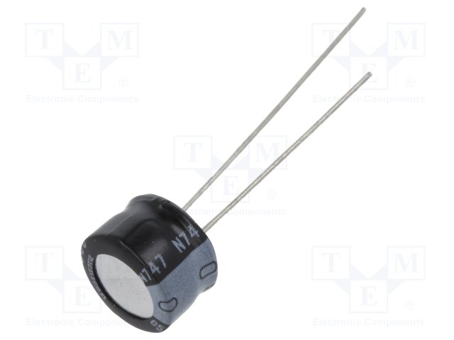 Конденсатор: электролитический; THT; 47мкФ; 10ВDC; Ø6,3x5мм; ±20% |