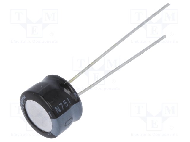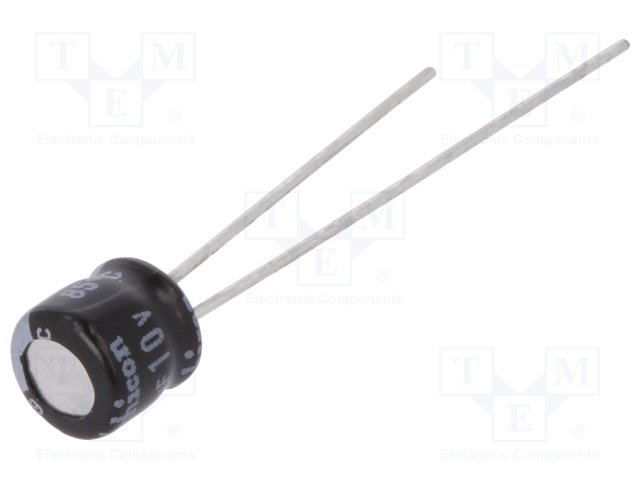 Конденсатор: электролитический; THT; 100мкФ; 10ВDC; Ø8x5мм; ±20% |