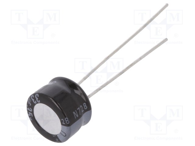 Конденсатор: электролитический; THT; 33мкФ; 25ВDC; Ø6,3x5мм; ±20% |