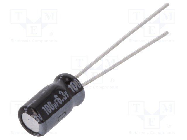 Конденсатор: электролитический; THT; 100мкФ; 6,3ВDC; Ø5x9мм; ±20% |