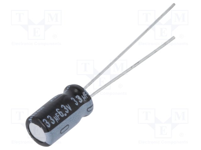 Конденсатор: электролитический; THT; 33мкФ; 6,3ВDC; Ø5x9мм; ±20% |