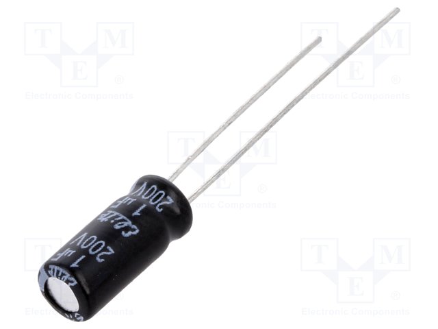 Конденсатор: электролитический; THT; 1мкФ; 200ВDC; Ø5x11мм; ±20% |