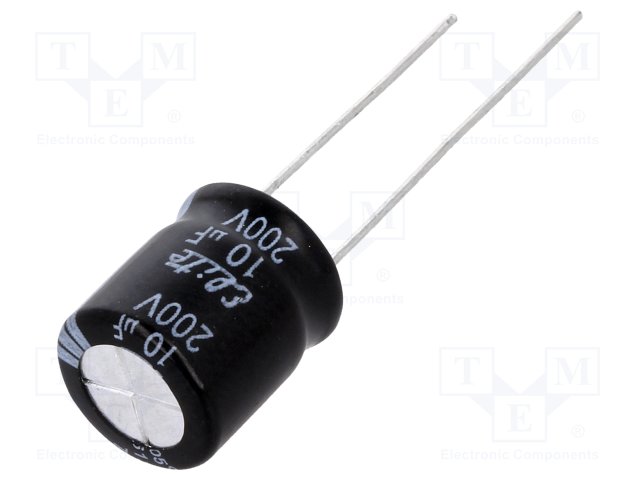 Конденсатор: электролитический; THT; 10мкФ; 200ВDC; Ø10x12,5мм |