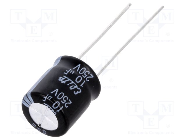 Конденсатор: электролитический; THT; 10мкФ; 250ВDC; Ø10x12мм; ±20% |