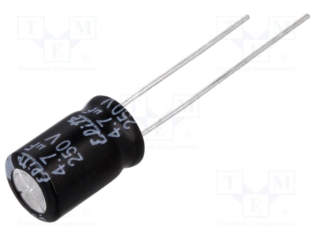 Конденсатор: электролитический; THT; 4,7мкФ; 250ВDC; Ø8x11,5мм |