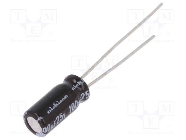 Конденсатор: электролитический; THT; 100мкФ; 25ВDC; Ø5x11мм; ±20% |