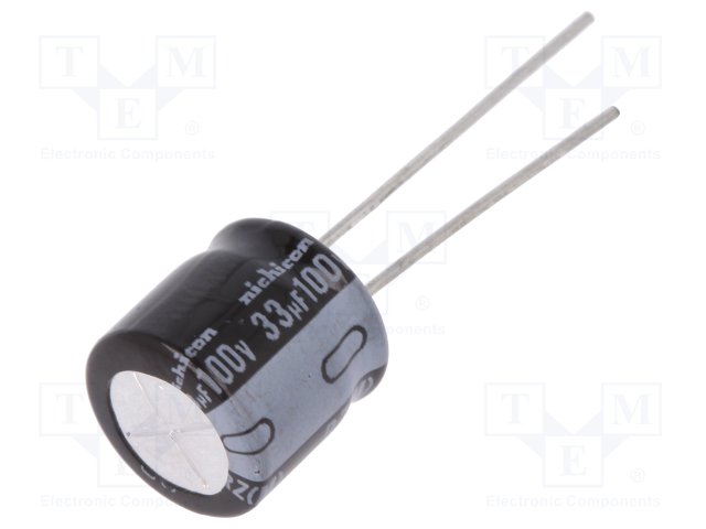 Конденсатор: электролитический; THT; 33мкФ; 100ВDC; Ø10x9мм; ±20% |